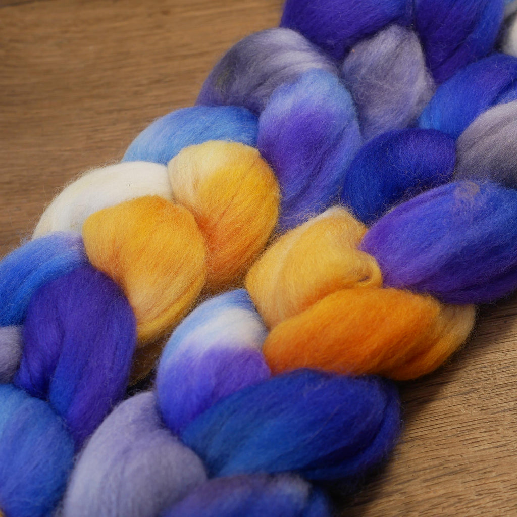 100g Hand Dyed Merino Wool Top for Handspinning or Felting - 'September Sky'