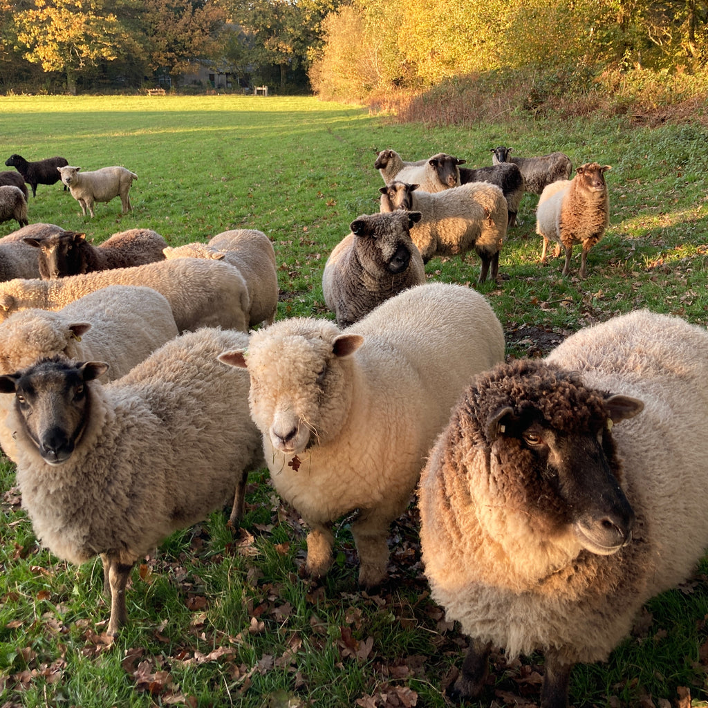 We keep our sheep outdoors, as naturally as possible. We're not organic, but the flock has minimal chemical inputs. They're fed primarily on meadow grass and our own farm-made hay. I know each of our 50 sheep by name and they're very much loved and respected. We keep them principally for their wool and for the wonderful job they do of maintaining our commercial hay meadows during the winter, and very occasionally for their meat. We don't raise lambs every year, preferring instead to raise our lambs until 4-5 years old before we decide whether to keep them as breeding stock, or as wool producers, or whether they're one of the few that goes to the local butcher. I really dislike having to make that decision, but everything else is part of the joy of shepherding - even the late night lambings and the emergency summer treatments for fly strike!