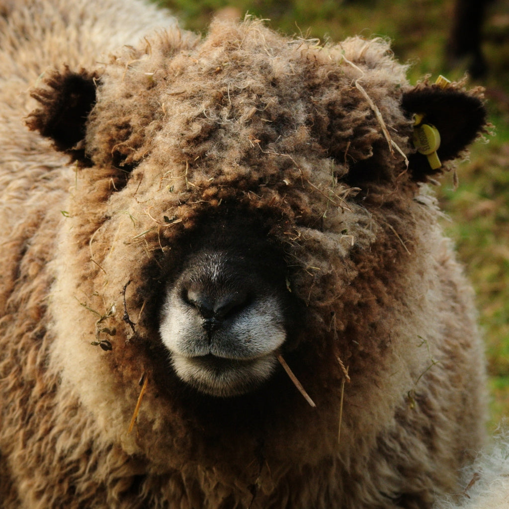 We keep our sheep outdoors, as naturally as possible. We're not organic, but the flock has minimal chemical inputs. They're fed primarily on meadow grass and our own farm-made hay. I know each of our 50 sheep by name and they're very much loved and respected. We keep them principally for their wool and for the wonderful job they do of maintaining our commercial hay meadows during the winter, and very occasionally for their meat. We don't raise lambs every year, preferring instead to raise our lambs until 4-5 years old before we decide whether to keep them as breeding stock, or as wool producers, or whether they're one of the few that goes to the local butcher. I really dislike having to make that decision, but everything else is part of the joy of shepherding - even the late night lambings and the emergency summer treatments for fly strike!
